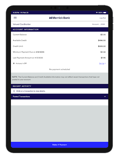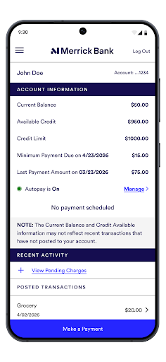 The Merrick Bank Mobile app is designed to help users manage their credit accounts easily. It provides an app experience that allows you to view balances, make payments, and monitor transactions right from your Android device.