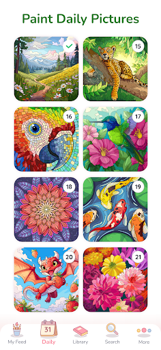 Happy Color® promotes relaxation and stress reduction by offering a calming coloring activity. The process of coloring by numbers helps users focus their attention, providing a distraction from stressors. Its extensive collection of images ensures that users always have engaging content, making it an effective tool for stress relief.