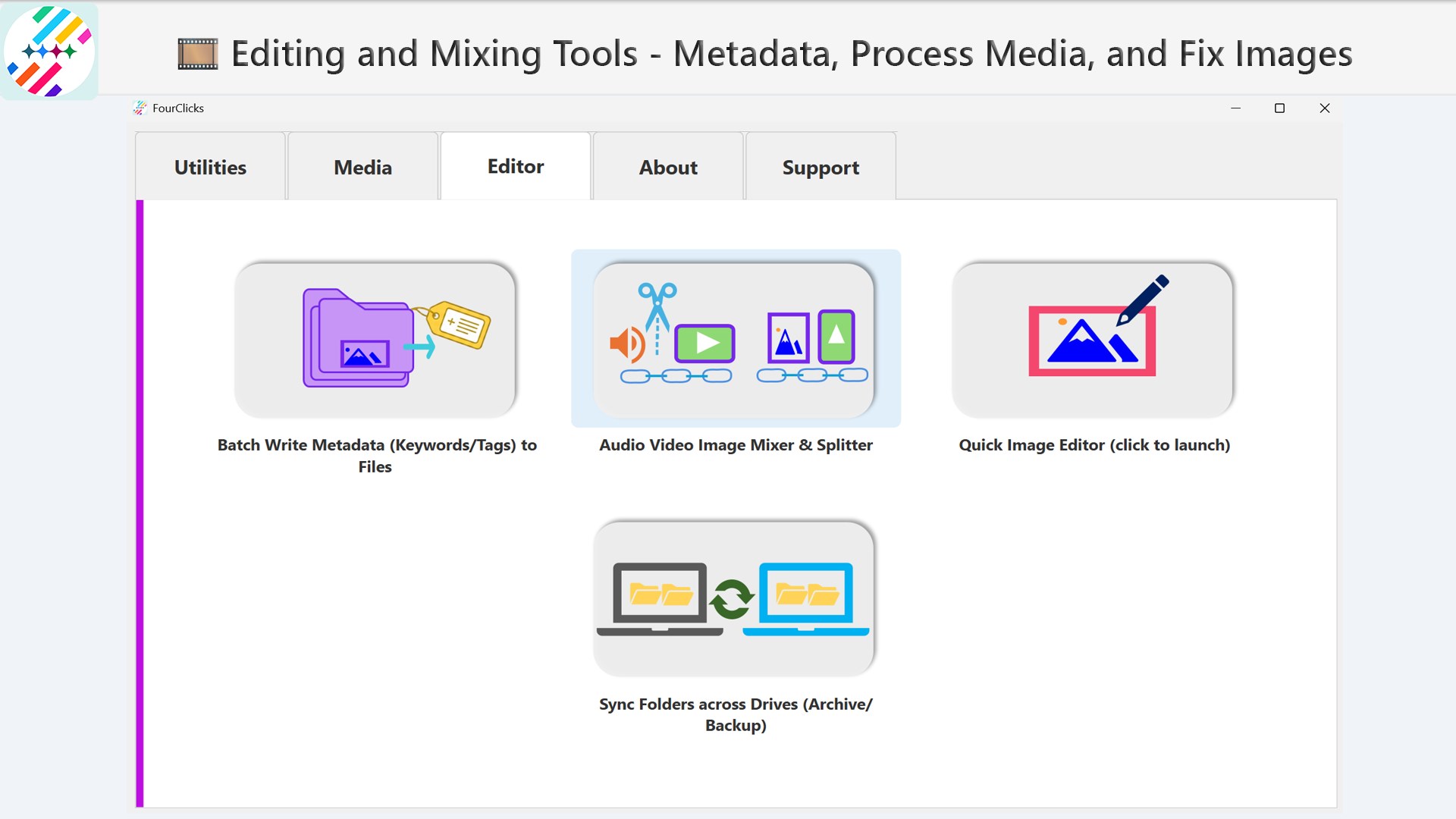 If you're a photography enthusiast or have a mountain of digital memories cluttering your PC, FourClicks Media promises to be your reliable digital assistant—streamlining your photo management, converting image formats, and crafting beautiful 4K slideshows in one sleek package. Developed by FourClicks Manager, this Windows application aims to simplify your media editing and organization tasks with a user-friendly approach, making it suitable for both casual hobbyists and more serious users.